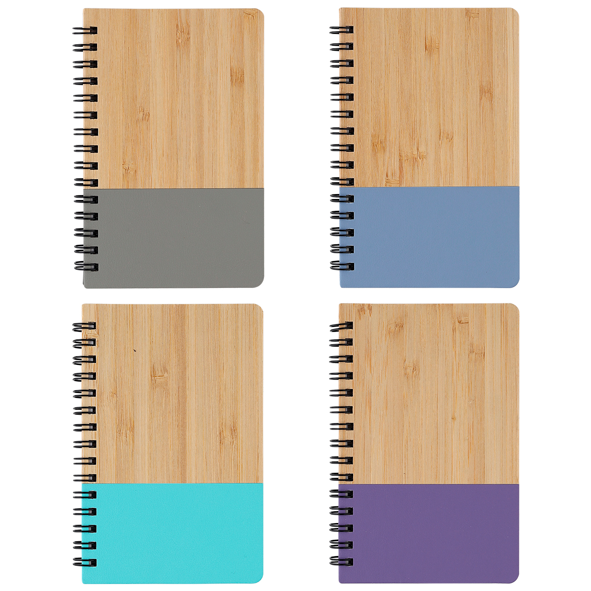 Libreta Pafos. - Libreta con pasta de bambú, espiral metálico, 60 hojas rayada...
