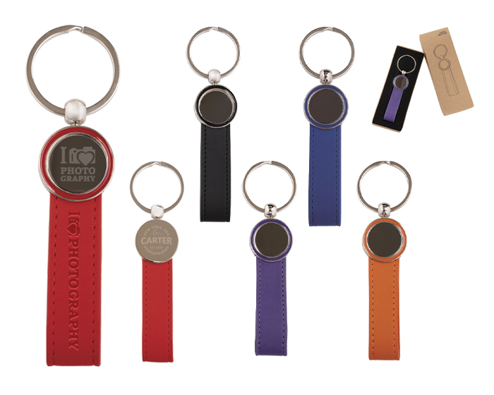 KAY - Llavero de curpiel con placa metálica para grabado láser y arillo metál...