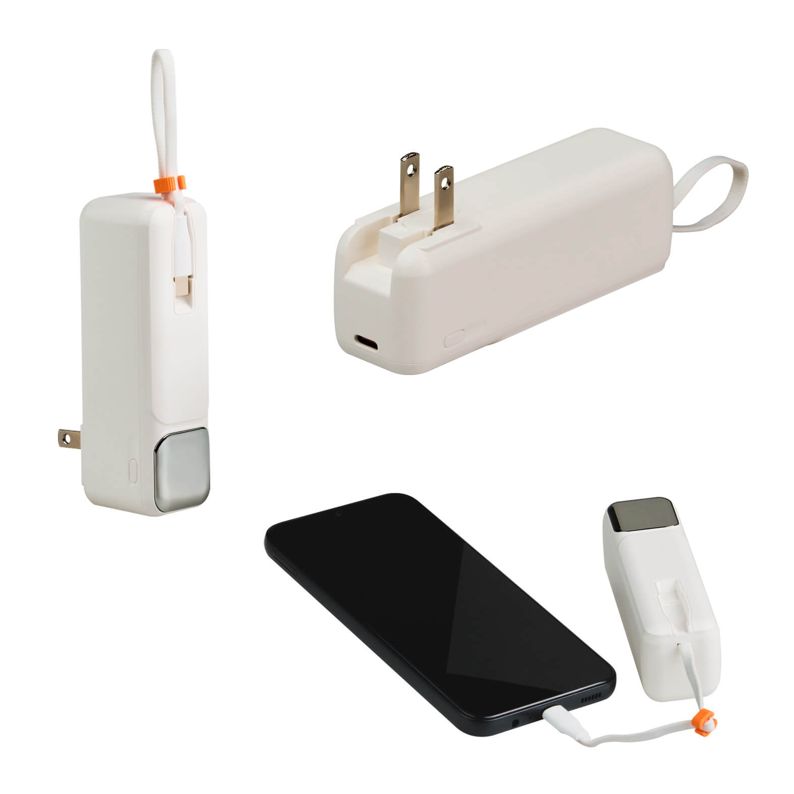 PROMS Power Bank de 5,000 mAh con carga rápida, enchufe integrado, cable de car...