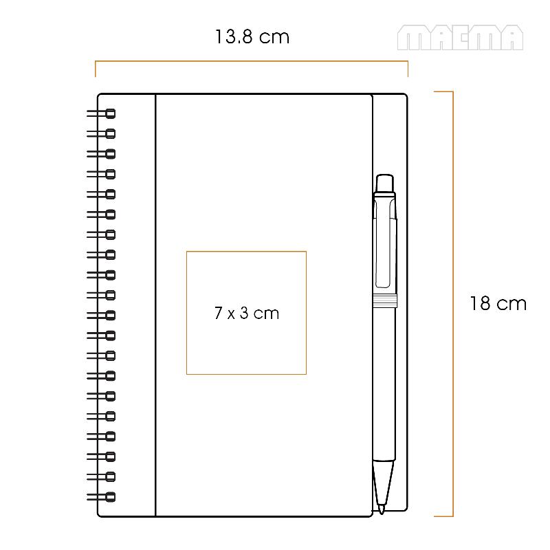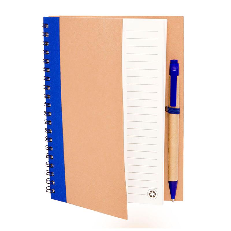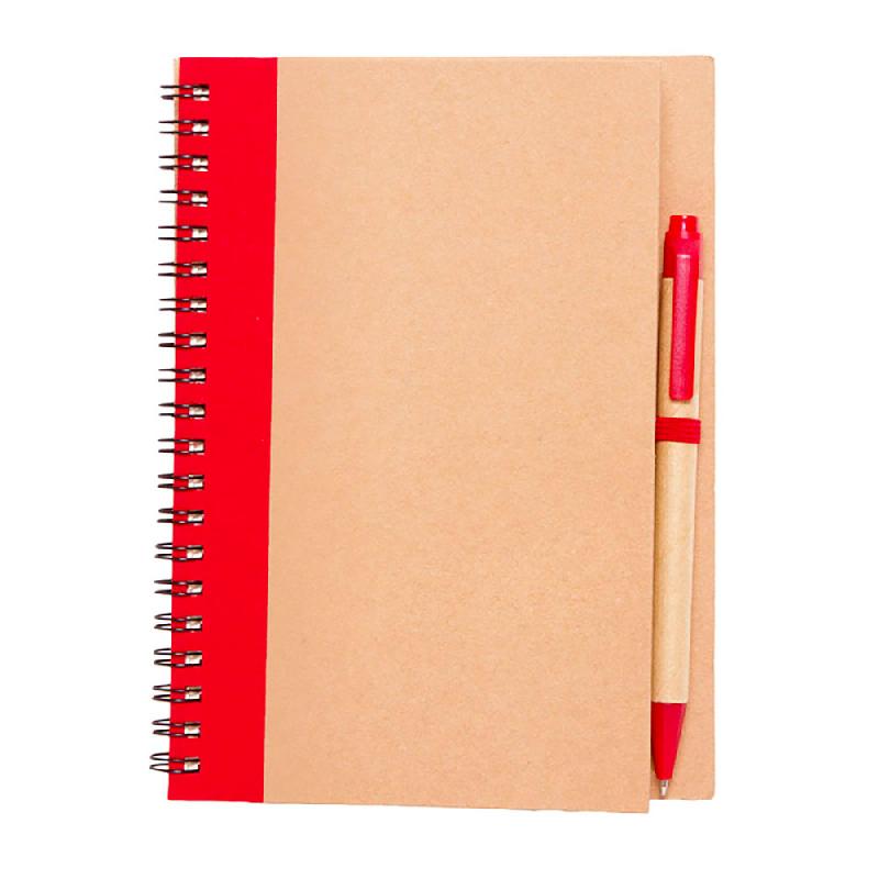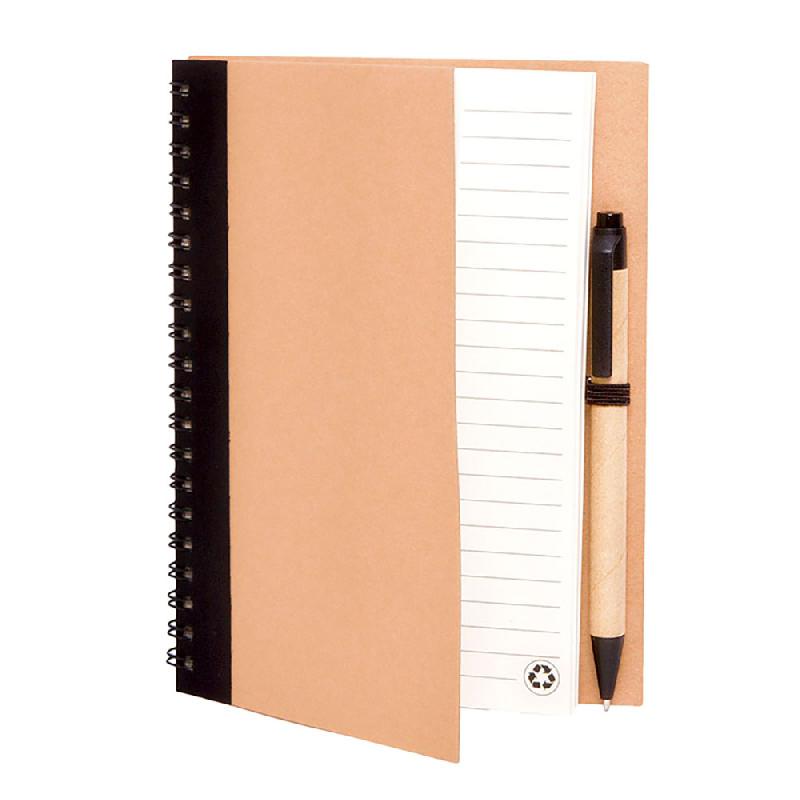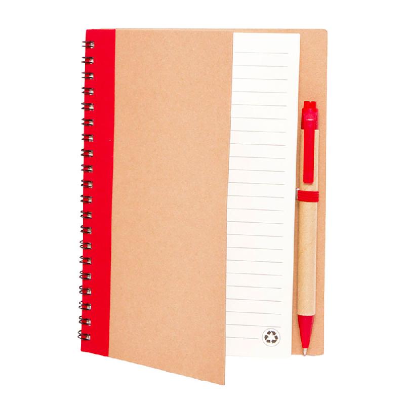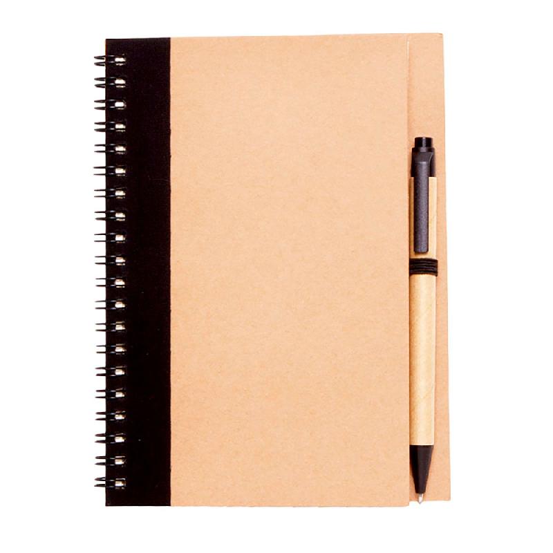 JASPER Cuaderno con 70 hojas rayadas fabricadas en papel reciclado, encuadernación espiral y bolígrafo. - MEDIDAS: 13,8 x 18,0 x 1,7 cm