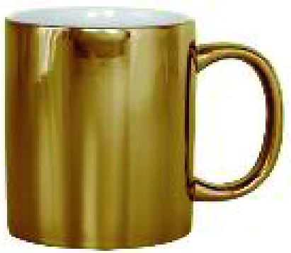 TAZA METALICA 11oz Material: Cerámica/Cerámica metalizada Medidas: 9.5 x 8.2 cm Capacidad: 11oz. Empaque: 36 pzas. Descripción: Taza de sublimación con acabado color plata metalizado e interior blanco.