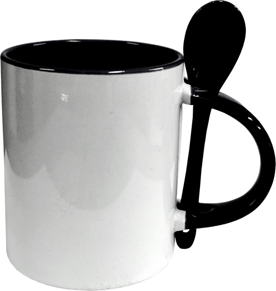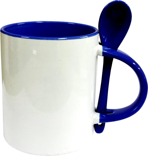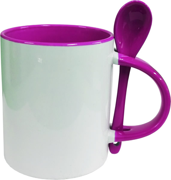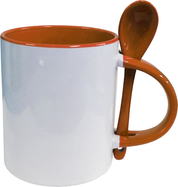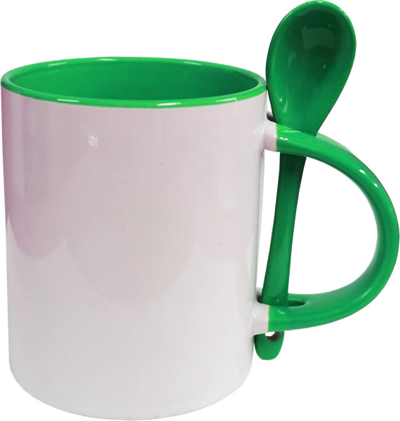 TAZA CON CUCHARA Material: Cerámica Medidas: 8.2x9.5cm Capacidad: 11oz. Empaque: 36 pzas. Descripción: Taza blanca para sublimación con interior, asa y cuchara de colores. COLORES 11oz COLORES: ROJO, AZUL COBALTO, AZUL CIELO, VERDE, ROSA, NARANJA, NEGRO