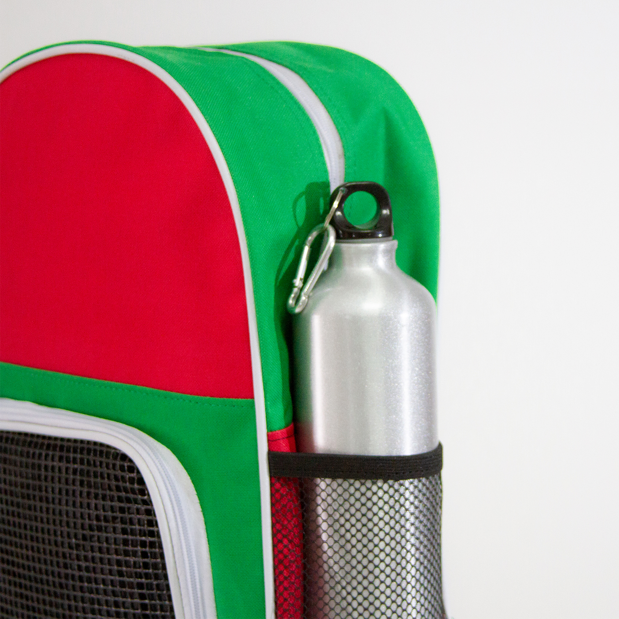 DOHA Mochila tricolor de poliéster, con compartimiento para balón y bolsas laterales de malla.