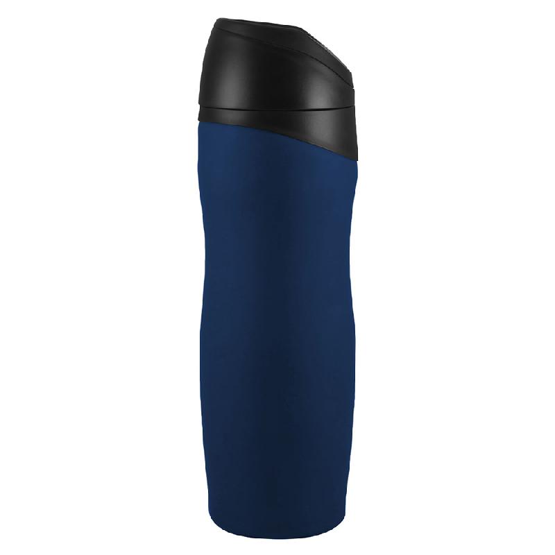 DUBLIN Termo de acero inoxidable de doble pared insulada al vacío. Terminado Rubber y tapa con cierre de rosca con botón pulsador para abrir y cerrar. Capacidad de 450 ml. Certificación FDA. - MEDIDAS: 24,8 x Ø 7,5 cm