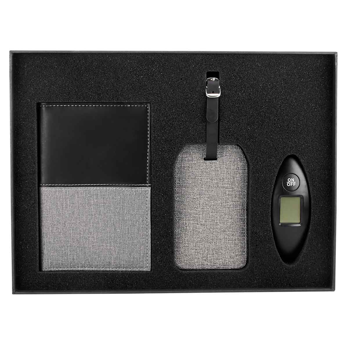 SET DE VIAJE DAEGU - Incluye porta pasaporte, identificador de maleta con papel para datos y báscula con display digital con capacidad máxima de 40 Kg (unidades de peso: Kg y lb) y caja de regalo.