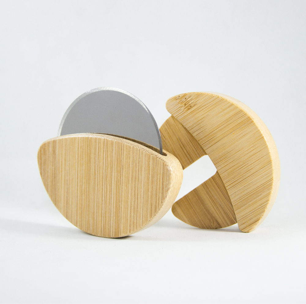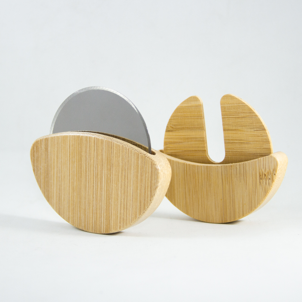 PISA. Cortador de pizza metálico con cubierta y tapa de bambú.