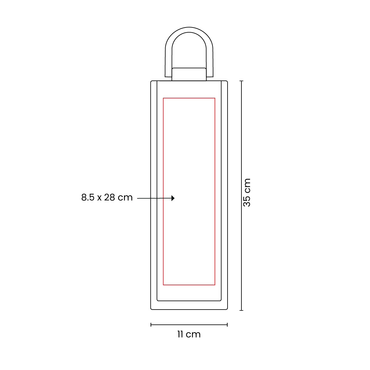 MATERIAL: Yute MEDIDAS: 11 x 35 x 9.5 cm IMPRESION: Serigrafía MED. EMPAQUE: 51 x 38 x 46 cm PESO EMPAQUE: 21.75 Kg PIEZAS EMPAQUE: 150