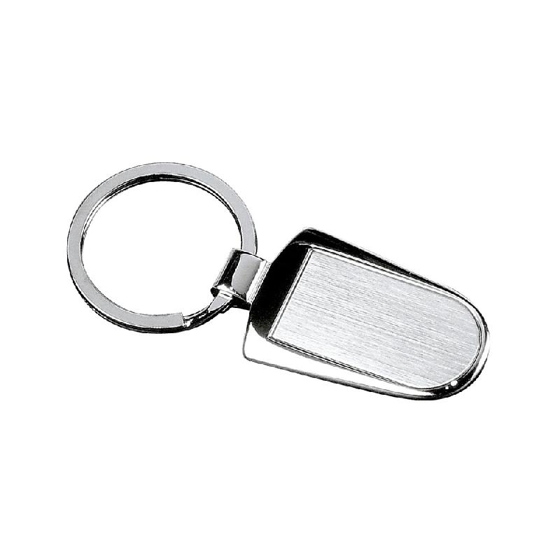 ASPEN Llavero de metal, ovalado, cromado y mate. - MEDIDAS: 8,4 x 3,5 x 0,3 cm