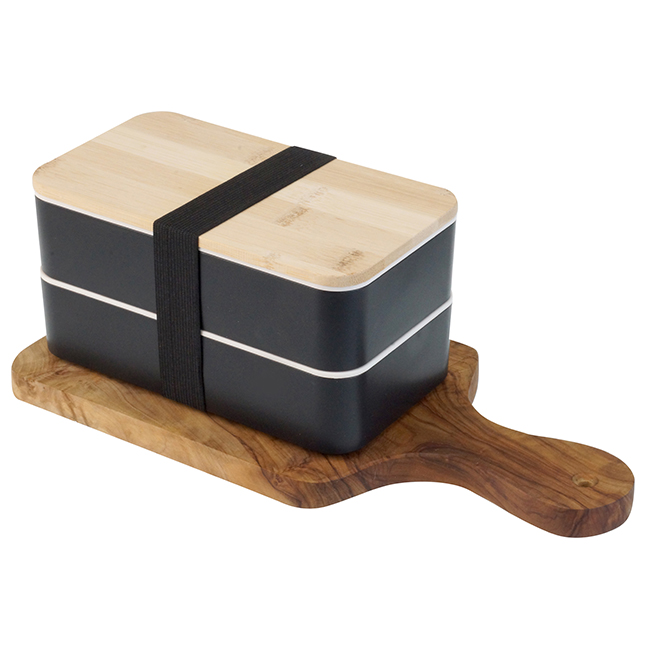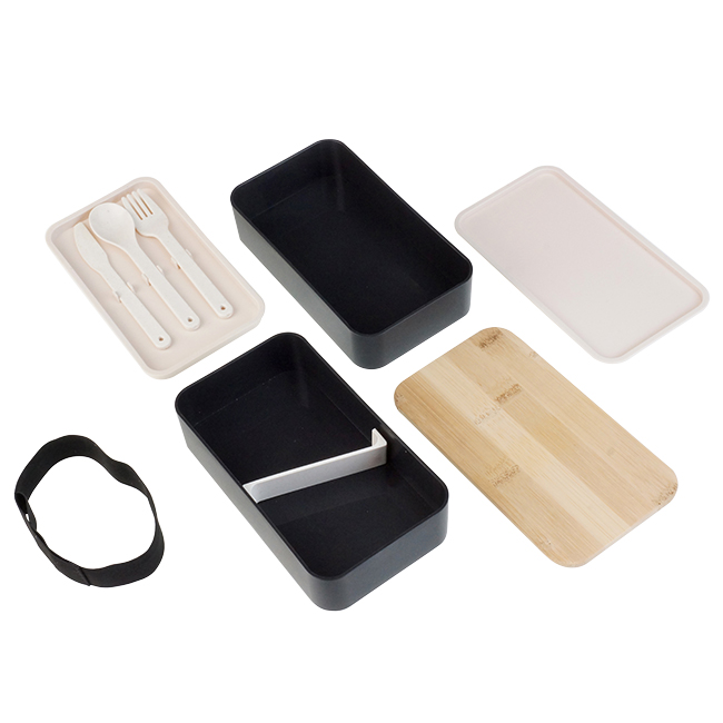 Doble Lucnh-Box Polaris Doble Lucnh-Box Polaris Dos recipientes con cinta elástica para sujetar. Tapa de bamboo. Puede introducirse en microondas. Barra divisoria movible. Tapa intermedia con juego de cubiertos: cuchara, tenedor, cuchillo.