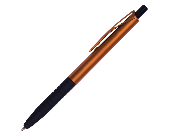 PLAIT - Bolígrafo de plástico en colores metálicos, punta touch y goma antideslizante. Mecanismo de click.