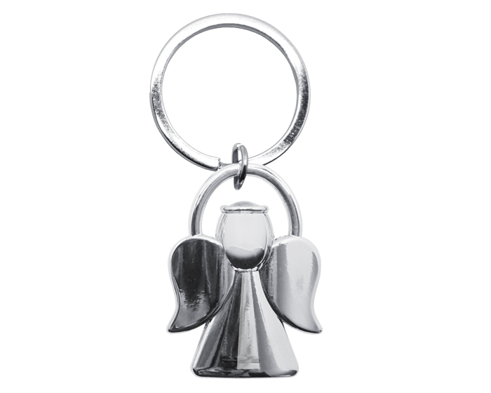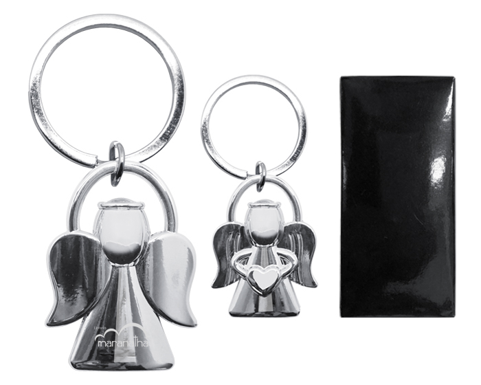ANGELO - Llavero en forma de ángel con arillo reforzado. Presentación: Caja individual de cartón en color negro.