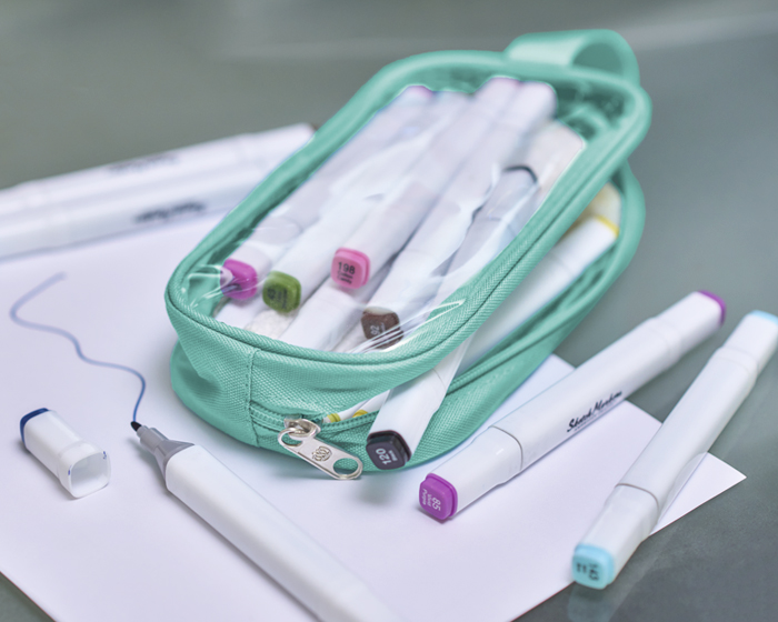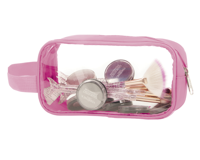 LUCY - Estuche para accesorios con cierre, ventana transparente y asa para agarrar.