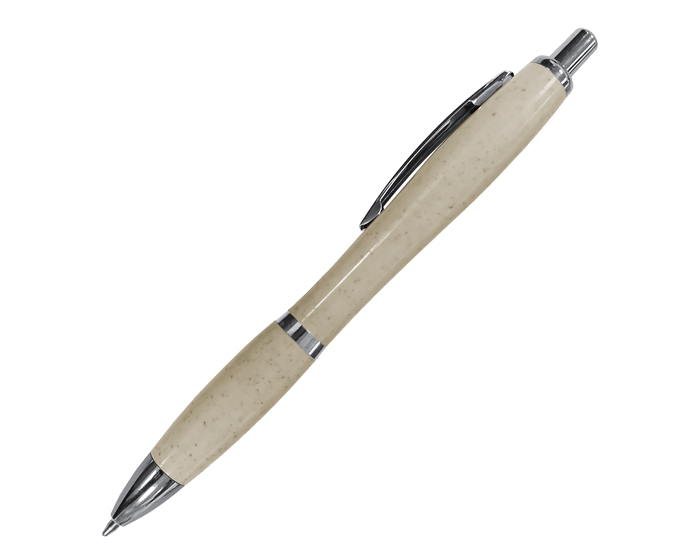 ECOPEN - Bolígrafo ecológico y reciclable, con cuerpo de plástico ABS y "fibra de Trigo", tiene clip metálico, cuenta con punta, clip y detalle al centro en color cromo. Mecanismo de click.