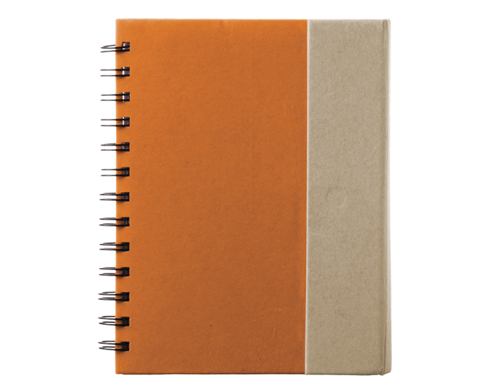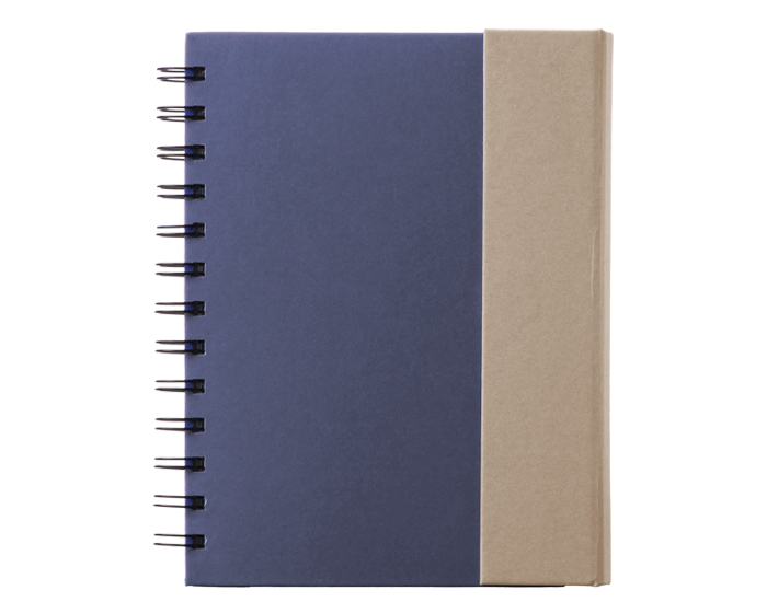 MINNA - Libreta ecológica con espiral metálico, broche magnético y protector de externos. Incluye 5 bandas adhesivas en colores diferentes y blocks de notas rectangulares en 2 tamaños. 70 hojas rayadas (140 páginas) y bolígrafo de papel con sujetador elástico.