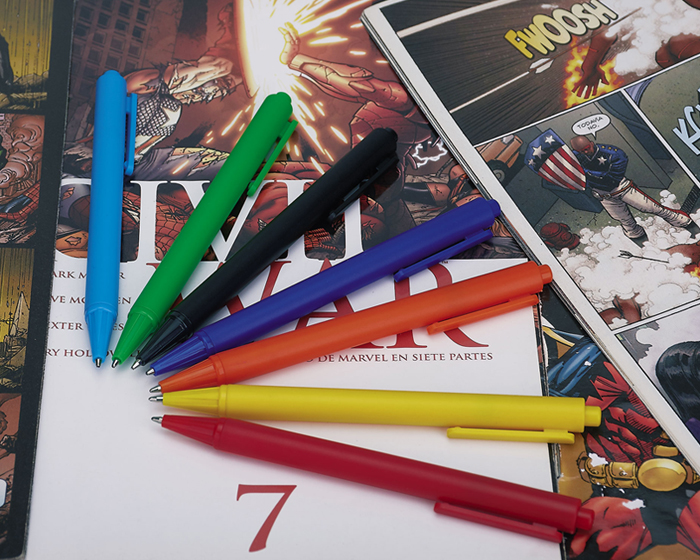 Bolígrafo de plástico con una gama de colores tierra que van de cálidos a fr...