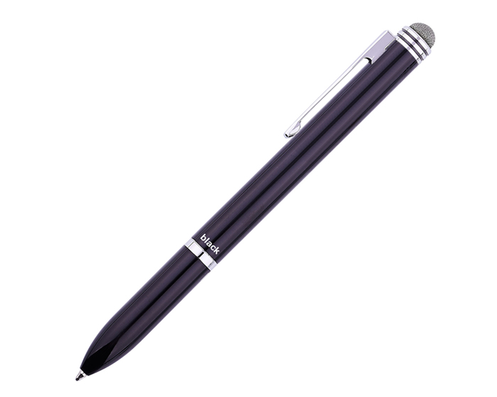 BOLÍGRAFO TOUCH TRES TINTAS "DREI" Cuerpo plateado. En la parte superior touch ...