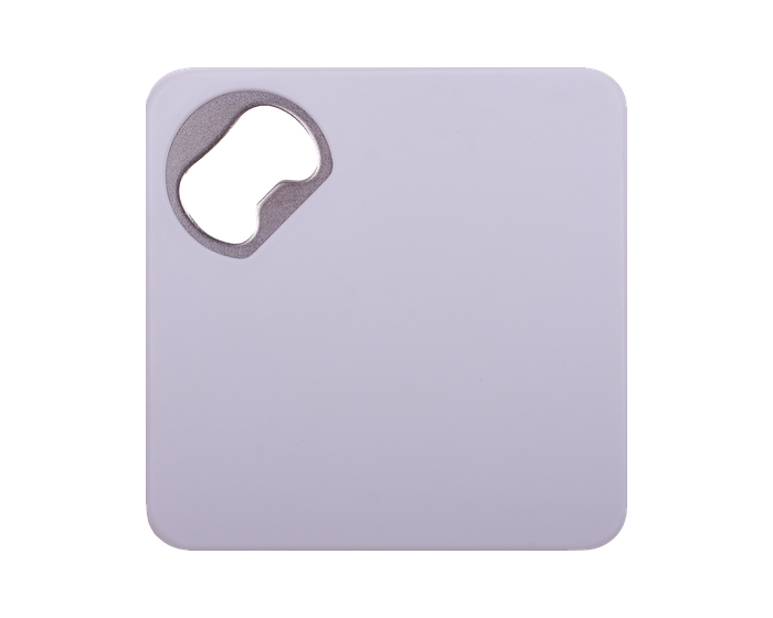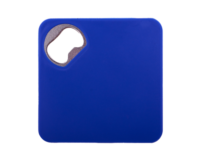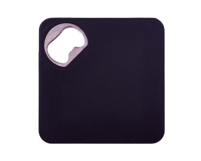 TRUMAN - Portavasos de plástico de forma cuadrada con destapador de acero inoxidable. Cuenta con base antideslizante en el reverso, para que se adhiera mejor a la superficie.