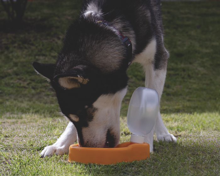 DOGGY - Bebedero plegable para mascotas en forma de globo con boquilla de rosca y base plegable que funciona como bebedero. Incluye asa de silicón para transportar. Cap. 500 ml.