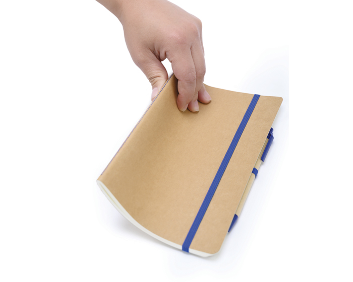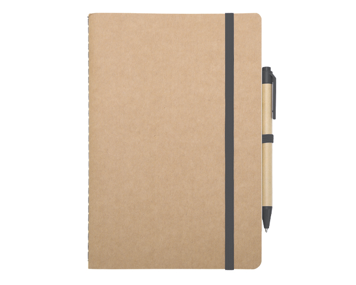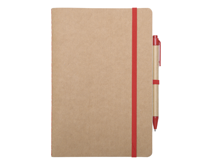 AULEX - Libreta ecológica de hojas crema con cubiertas de cartón reciclado, incluye bolígrafo de cartón con mecanismo de click. Tiene resorte para sujetar el bolígrafo y otro para mantener cerrada la libreta.