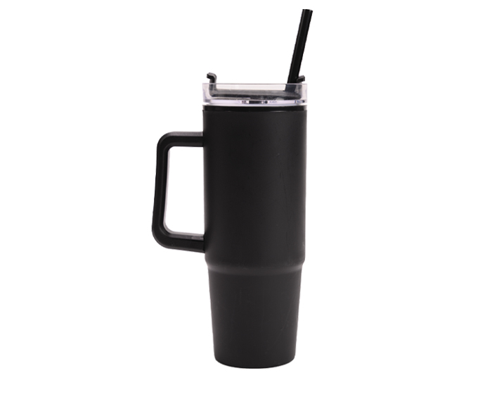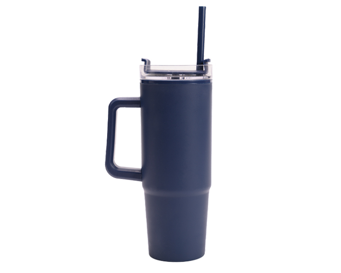 CARIBE - Termo de plástico de doble pared con asa. Cuenta con tapa transparente con cierre de rosca y sobre tapa giratoria en color del termo, con ranura para popote. Incluye popote de color. CAP. 770 ml.