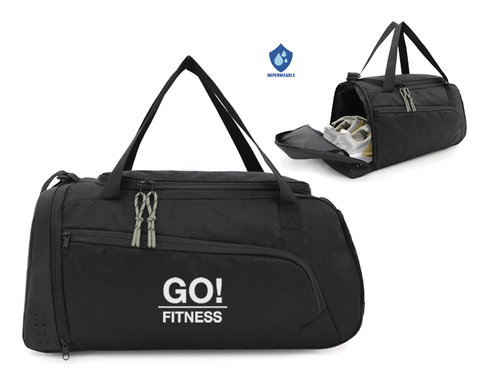 NADAL - Maleta estilo deportivo de poliéster texturizado, el compartimento principal abre en forma de tapa lateral con 2 tiradores de cierre, para darle mayor amplitud al momento de su uso, cuenta con una pequeña bolsa interna con cierre, para accesorios pequeños. La parte exterior trae un amplio bolsillo frontal con cierre, un compartimento lateral de curpiel para zapatos y del lado opuesto, una bolsa lateral de malla. La parte de curpiel se extiende en toda la base de la maleta para mayor protección en zonas húmedas. Tiene correa larga ajustable al hombro y 2 asas cortas para su fácil manejo.