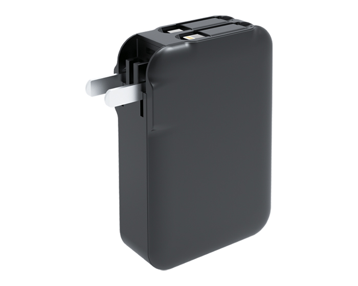 ELIXIR - Batería de carga rápida con función de adaptador de corriente plegable con capacidad de 5,000 mAh. Cuenta con pantalla digital que indica el porcentaje de la batería, entrada de carga tipo C (Incluye cable de carga), botón de encendido/apagado y 2 cables de salida para carga de dispositivos móviles: 1 entrada tipo C y uno entrada para iphone. Presentación: Caja de regalo a color.