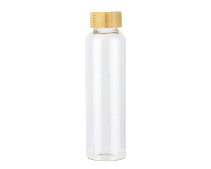 NATURALLS - Cilindro de vidrio de borosilicato con tapa de rosca de bambú. CAP. 600 ml. Presentación: caja en color negro.