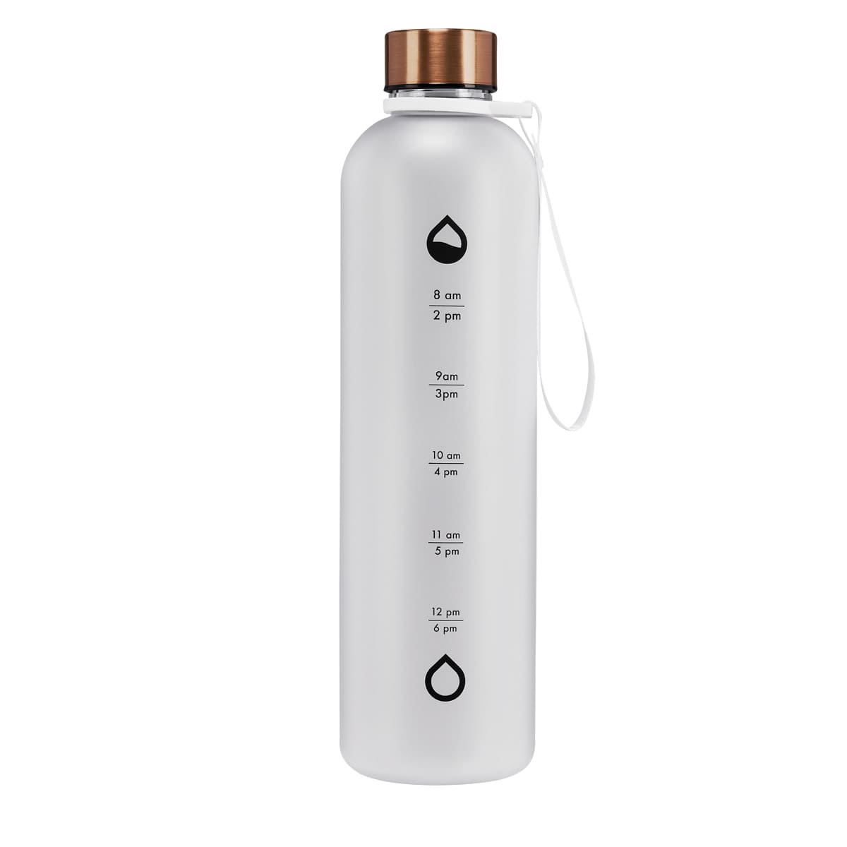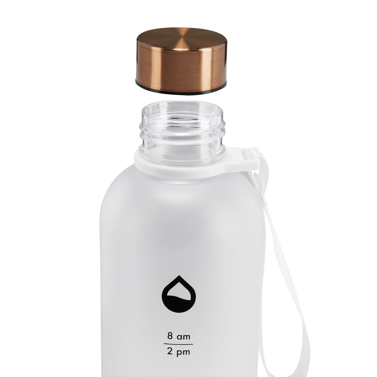 CILINDRO ASSH - Tapa metálica con cierre de rosca. Aro de plástico con asa de tela. Cuerpo con terminado mate, suave al tacto y color frosty . Incluye marcador de tiempo para motivar tus hábitos de hidratación. Incluye caja individual.