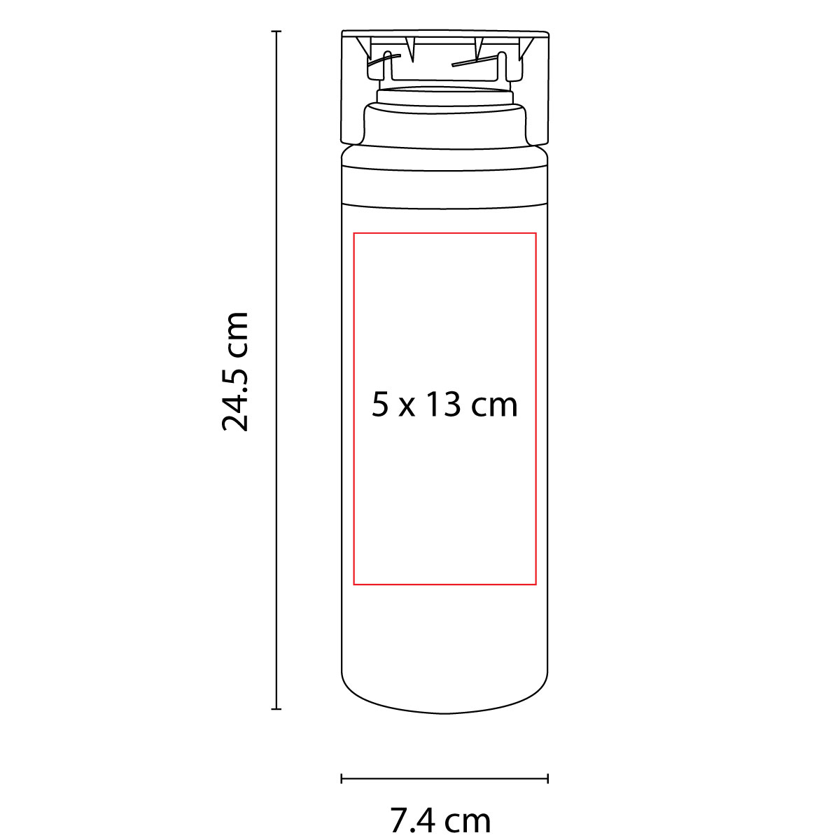 MATERIAL: PET MEDIDAS: 7.4 x 24.5 cm IMPRESION: Serigrafía / Tampografía MED. EMPAQUE: 64.5 x 78 x 57 cm PESO EMPAQUE: 32.02 Kg PIEZAS EMPAQUE: 168