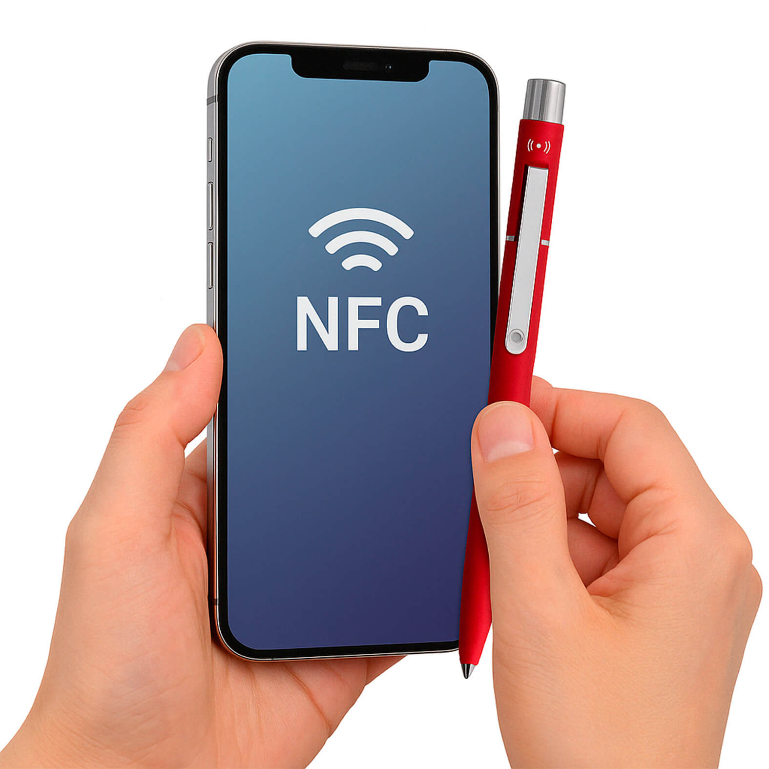 ATOM Bolígrafo metálico con acabado rubber y etiqueta NFC integrada, ideal para conectar con el mundo digital. Compatible con teléfonos inteligentes NFC, permite almacenar un enlace para acceso rápido a información, sitios web o contenido exclusivo. Cuenta con mecanismo de click y clip metálico.