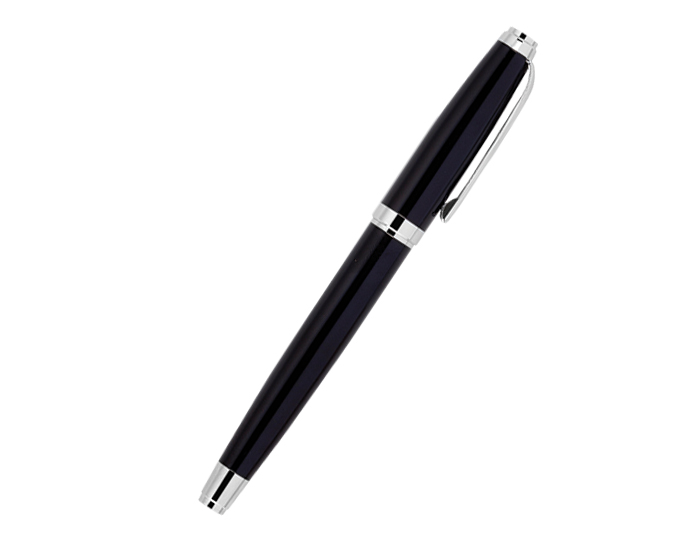MONTENEGRO - Bolígrafo metálico tipo roller con tapa a presión, recubrimiento liso de color. Presentación: caja en color negro.