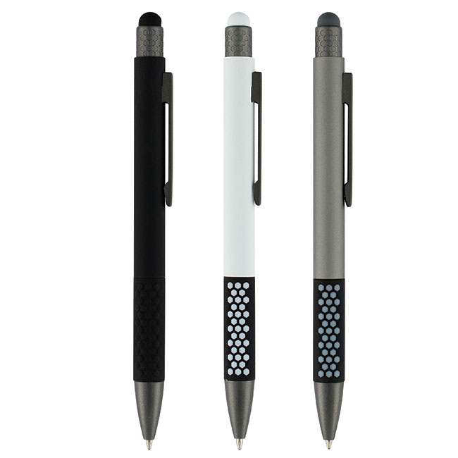 BOLÍGRAFO TOUCH "LOGIX" Cuerpo color negro engomado. Puntera touch y apertura g...