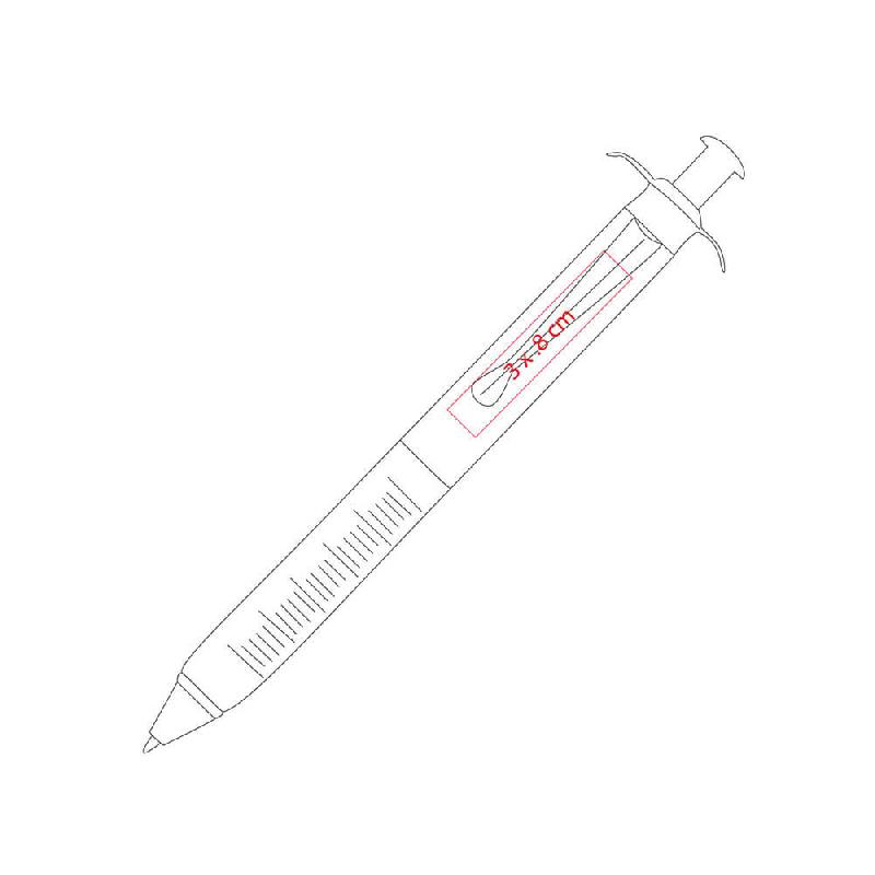 Lapicero en forma de jeringa transparente. Medidas: 14 x 1.5 cm Material: Metal.