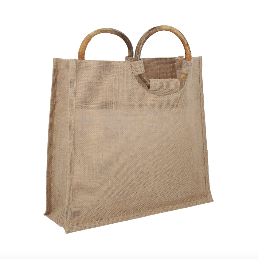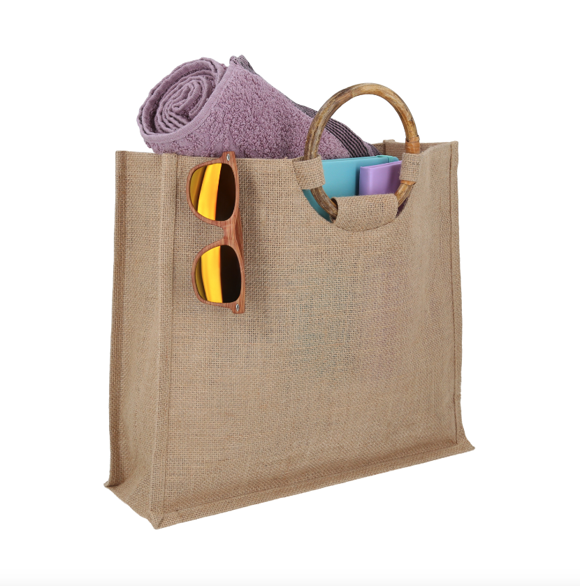 COLMAR Bolsa de yute con doble asas de madera y fuelle.
