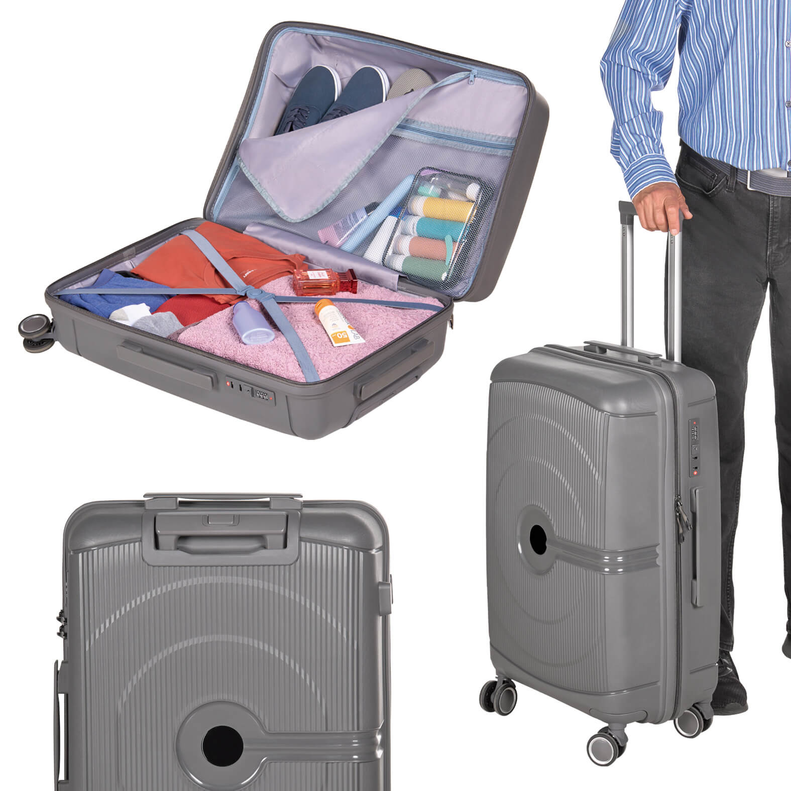 DURZAM Maleta de polipropileno, resistente a golpes, ideal para viaje. Cuenta con doble rueda giratoria, asa metálica retráctil y candado de seguridad.