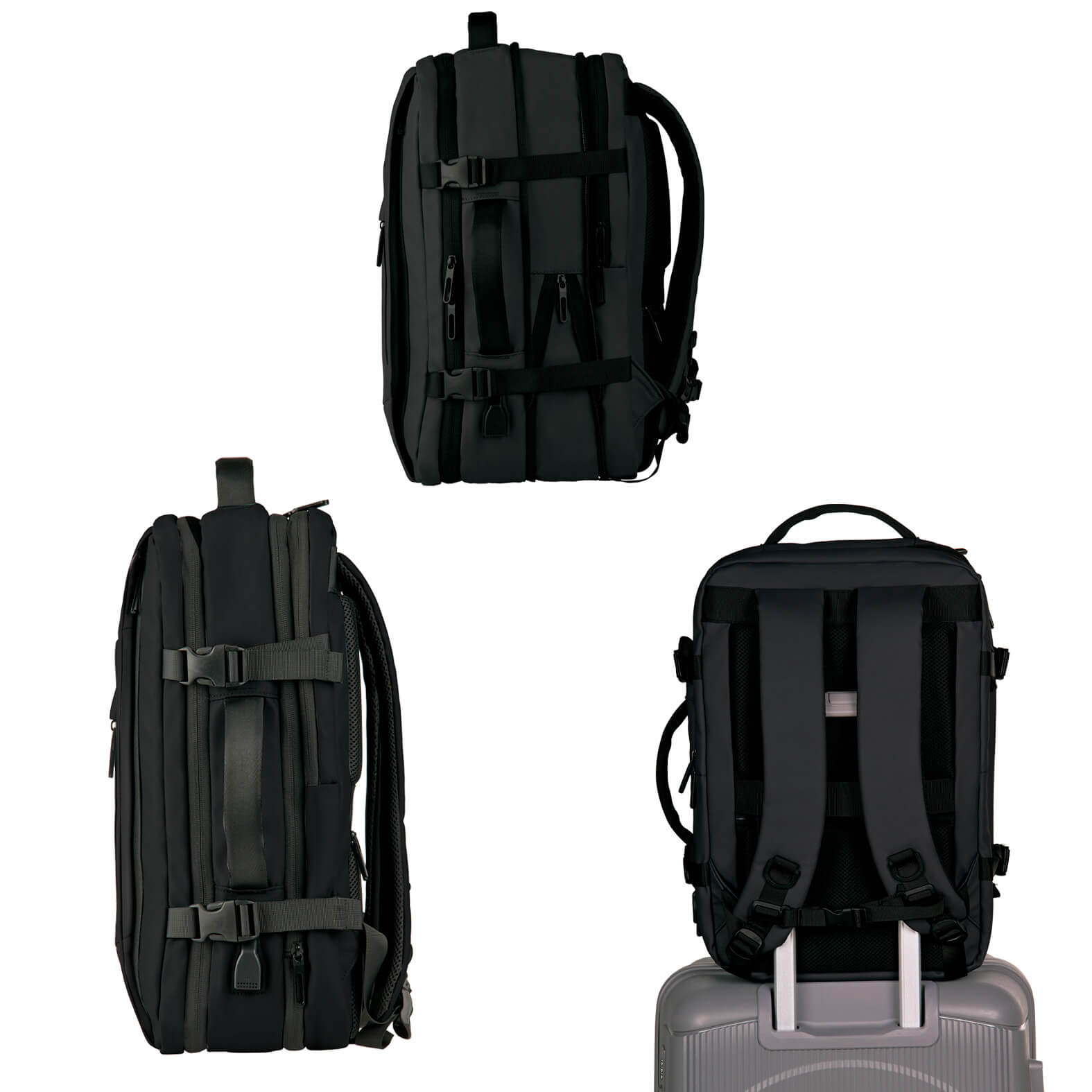 QIAN Mochila con compartimento principal de malla con cierre, puerto USB, organizador interno, cierre extensible para ampliar la capacidad, con broches ajustables, compartimento trasero con porta laptop de 17", tres bolsas frontales con cierre, respaldo acolchado con bolsa de seguridad y banda elástica, además de asa superior y lateral.