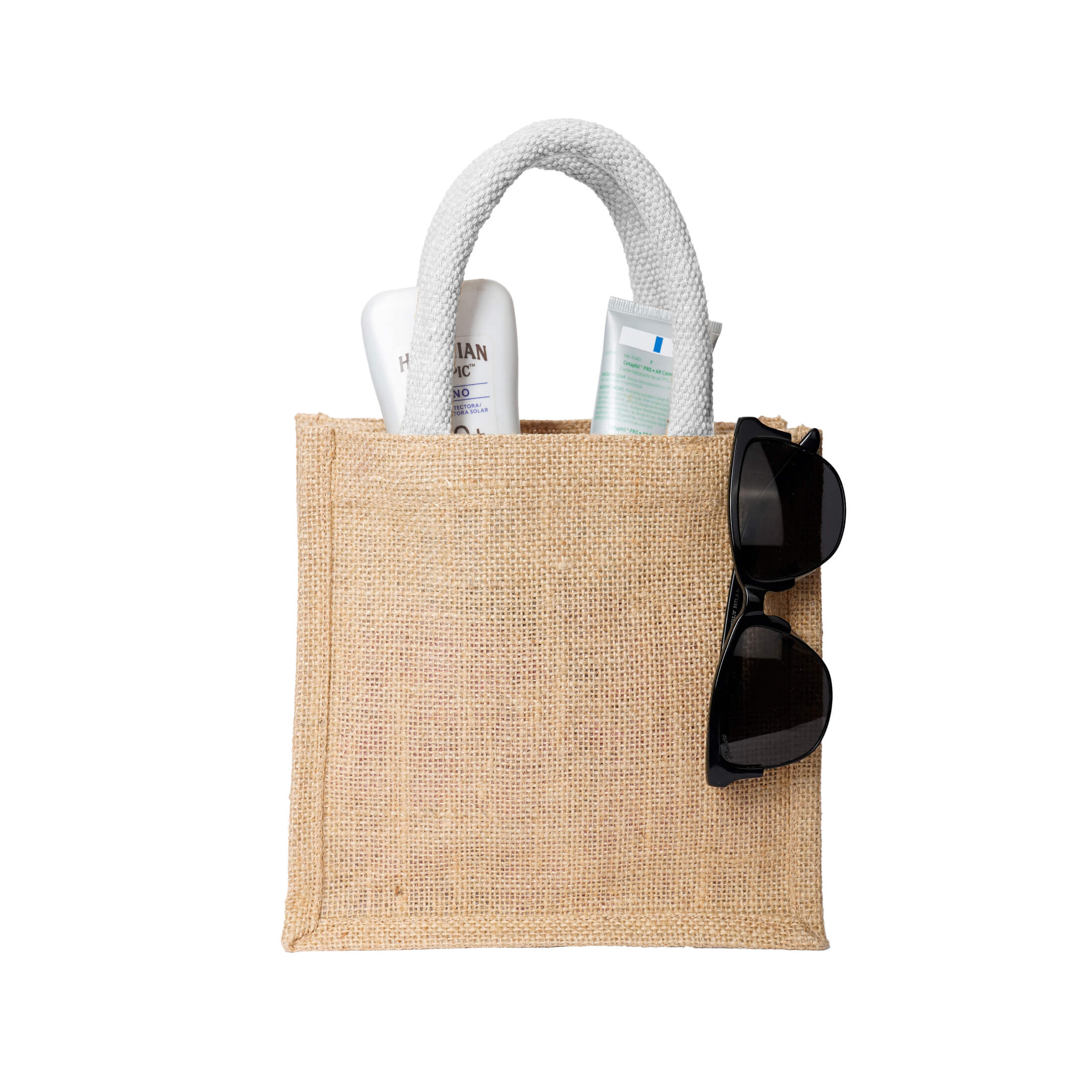 ATZOMPA Bolsa de yute de 220 g/m², con asas de algodón.