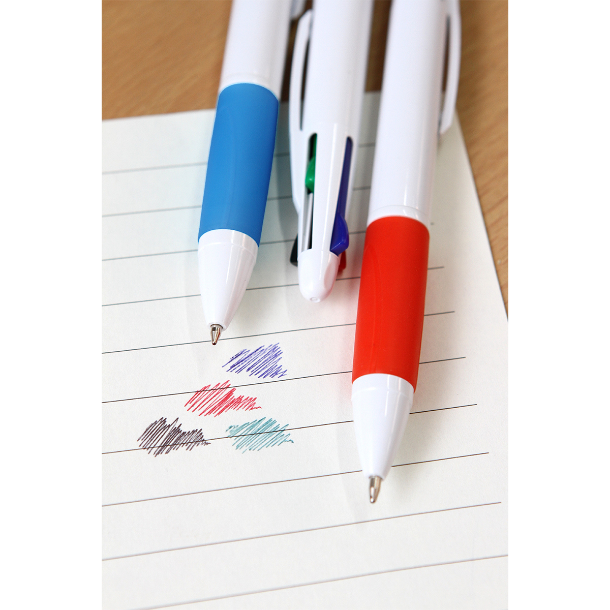 Bolígrafo Nubia. - Bolígrafo 4 en 1, con barril de plástico ABS y grip suave, 4 colores de escritura (azul, negro, rojo, verde).