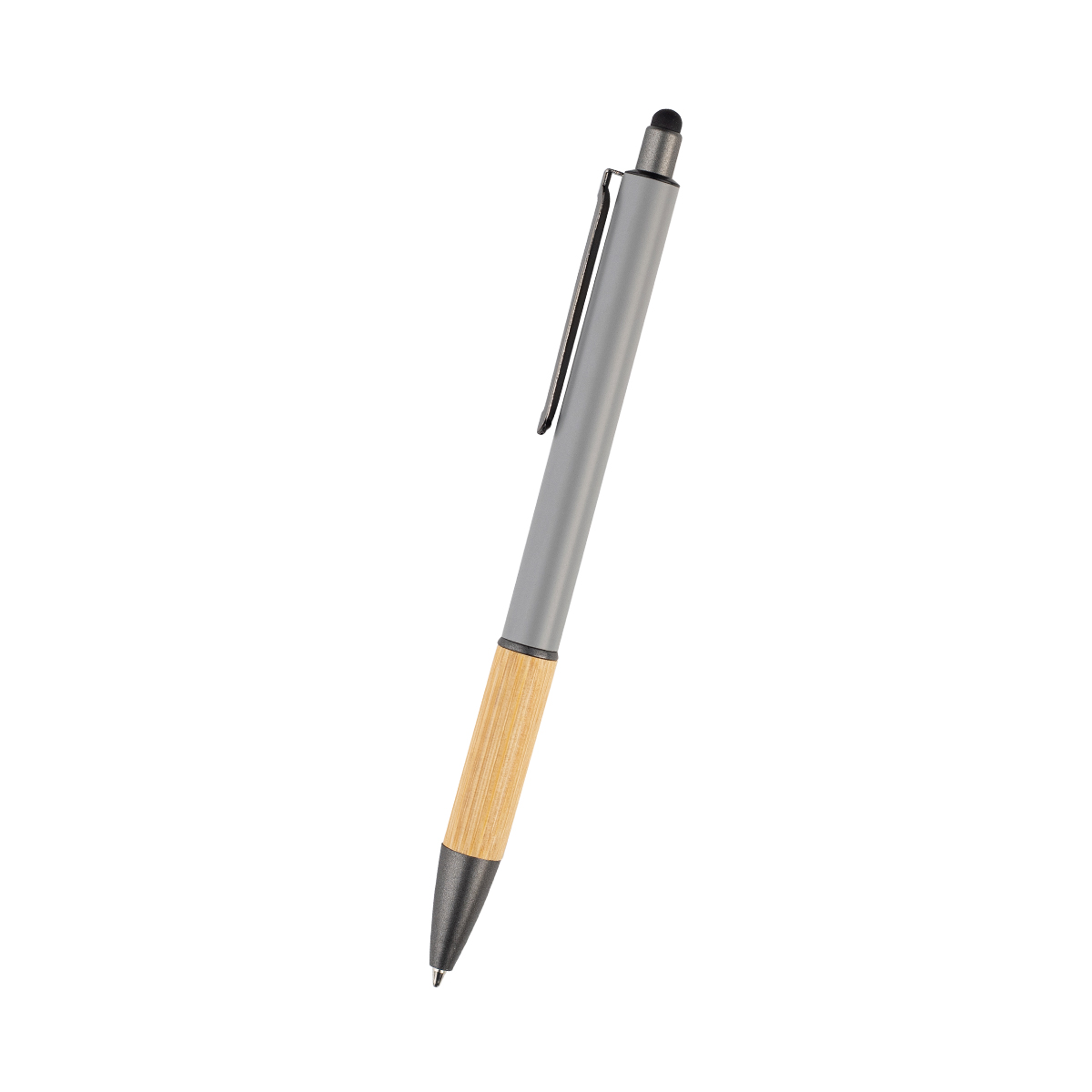 ZACI Bolígrafo plástico con grip de bambú, clip y mecanismo de click....
