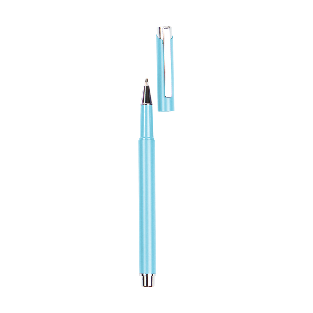 Magic Bolígrafo metálico con detalles negros y plata. Tapón de color con pode...
