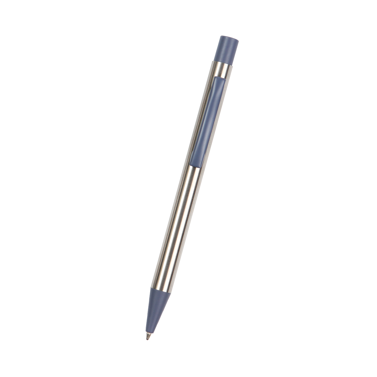 Bolígrafo Krems. - Bolígrafo con mecanismo de botón, barril fabricado de acero inoxidable reciclado, con clip metálico, tinta de escritura azul.