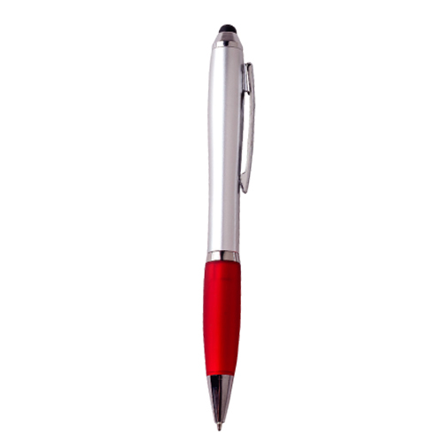NIZA Bolígrafo de plástico con mecanismo retráctil, clip metálico, grip de goma y goma touch screen.