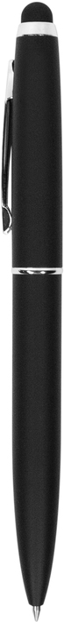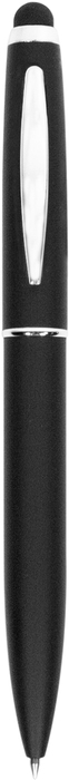 BOLÍGRAFO TOUCH "LOGIX" Cuerpo color negro engomado. Puntera touch y apertura giratoria. Cuenta con detalles color plata. Tinta negra. Decapa plata. Presentación en caja de regalo.