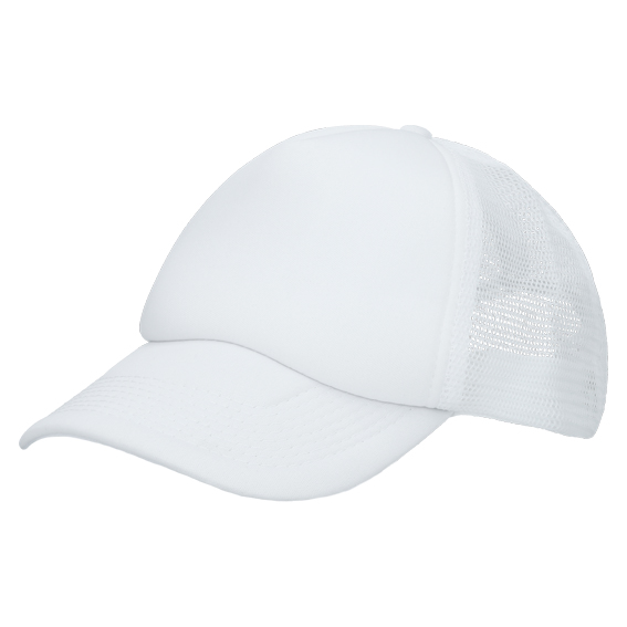 JETS Gorra 100% poliéster con broche de plástico, visera acolchada en la parte superior que cuenta con 1 gajo frontal en color blanco y 4 gajos con malla.