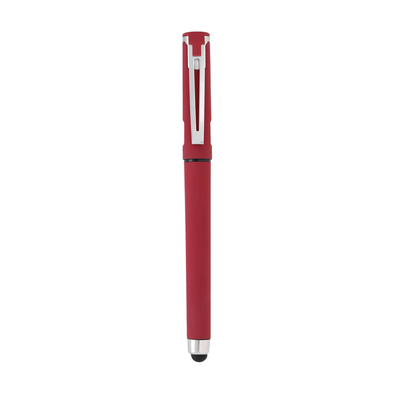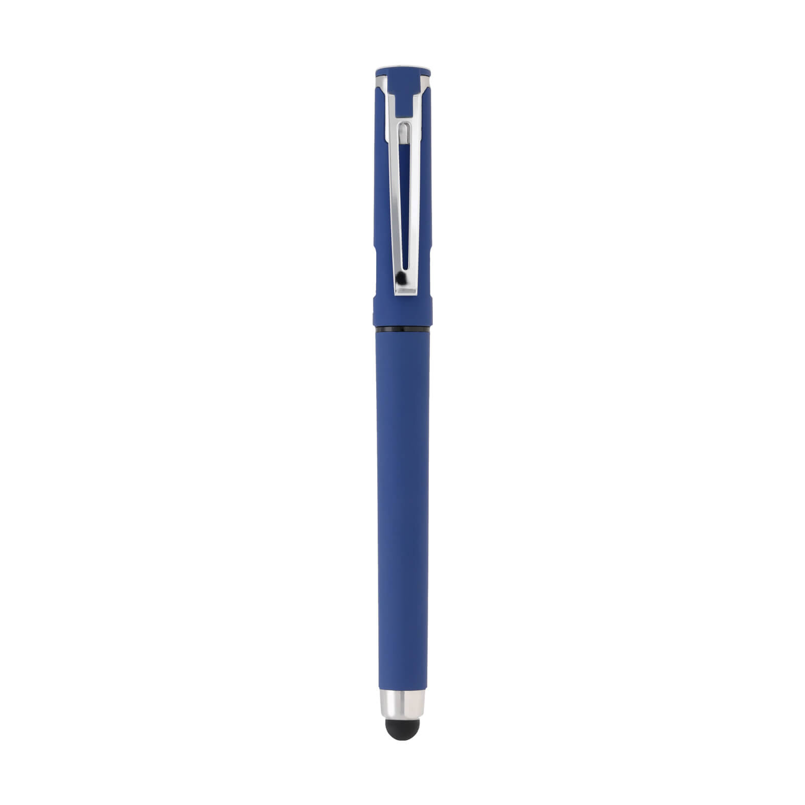 LIOZ Bolígrafo de plástico acabado rubber, tinta de gel y goma touchs creen. Incluye tapa con clip y espacio que sirve como soporte para celular.