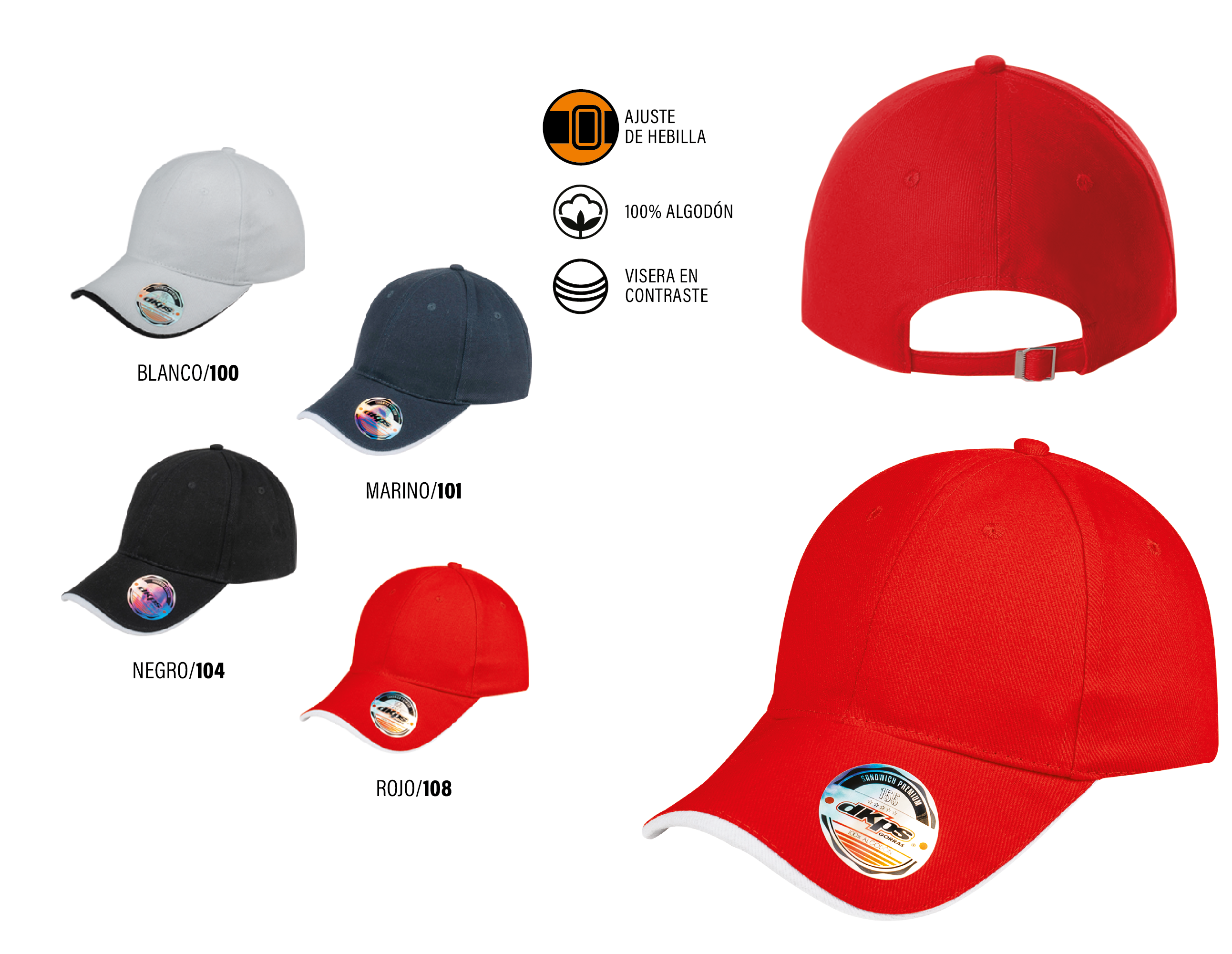 Gorra Gama cerrada, banda elástica personalizada, Material: ...