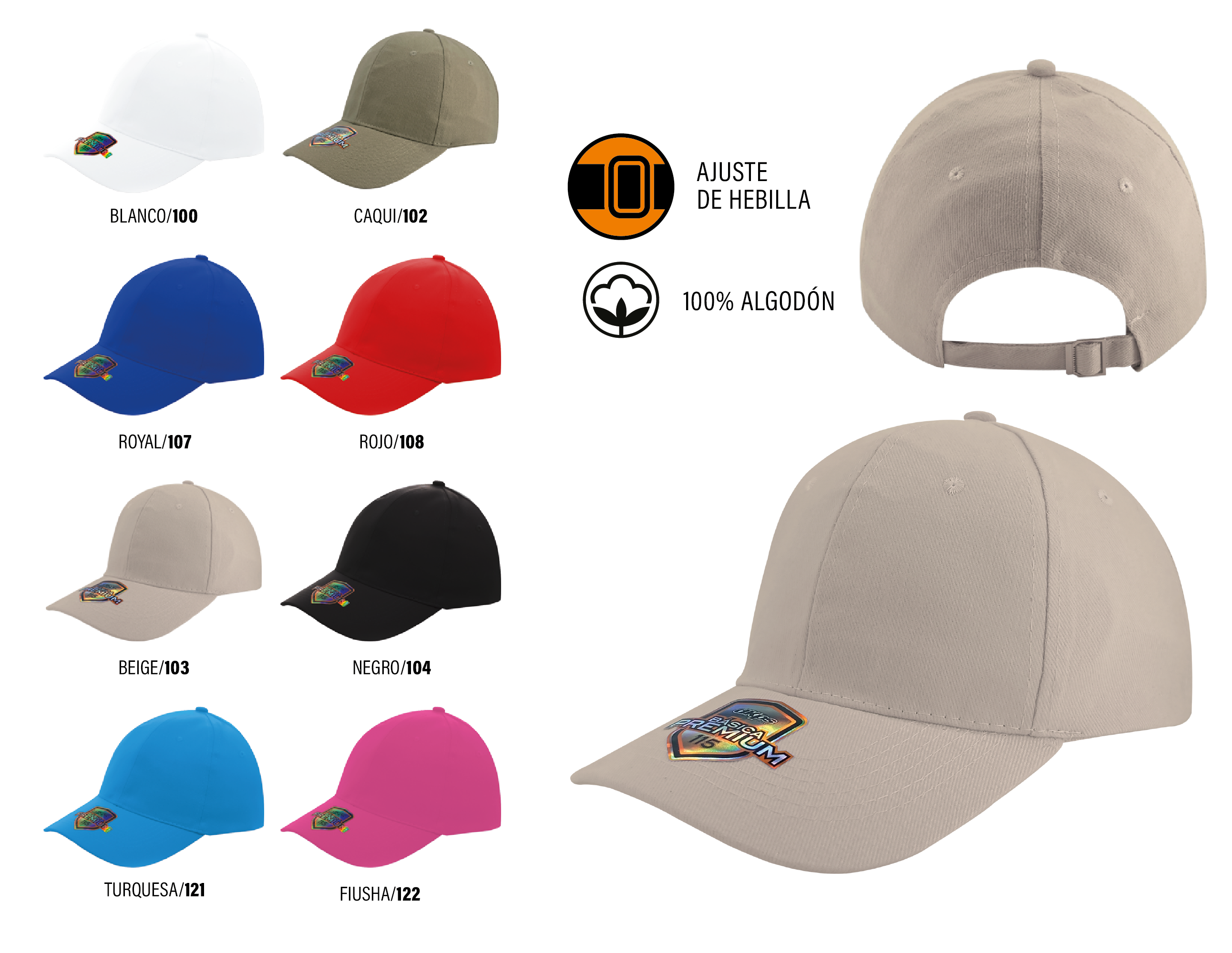 DKPS #115 GORRA PREMIUM BLANCO UN GABARDINA 100% ALG. AJUSTE HEBILLA