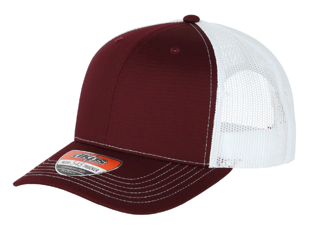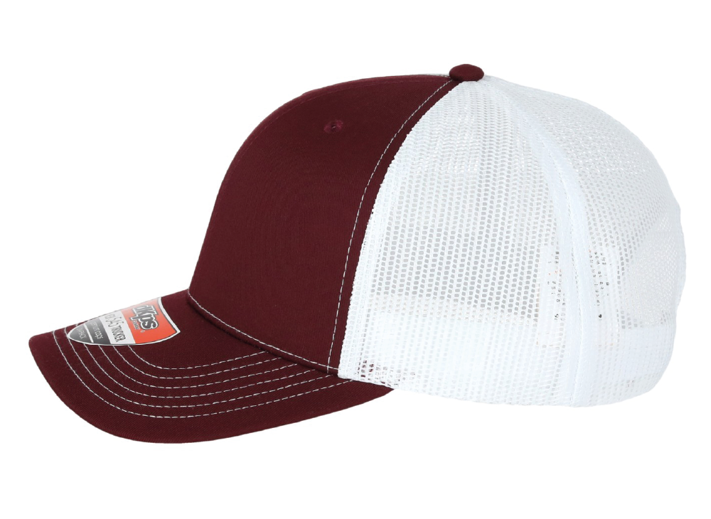 DKPS #545 GORRA MESH VINO/BLANCO, ALG 50% POL 50%, MALLA PREMIUM 6 GAJOS, AJUSTE PLASTICO