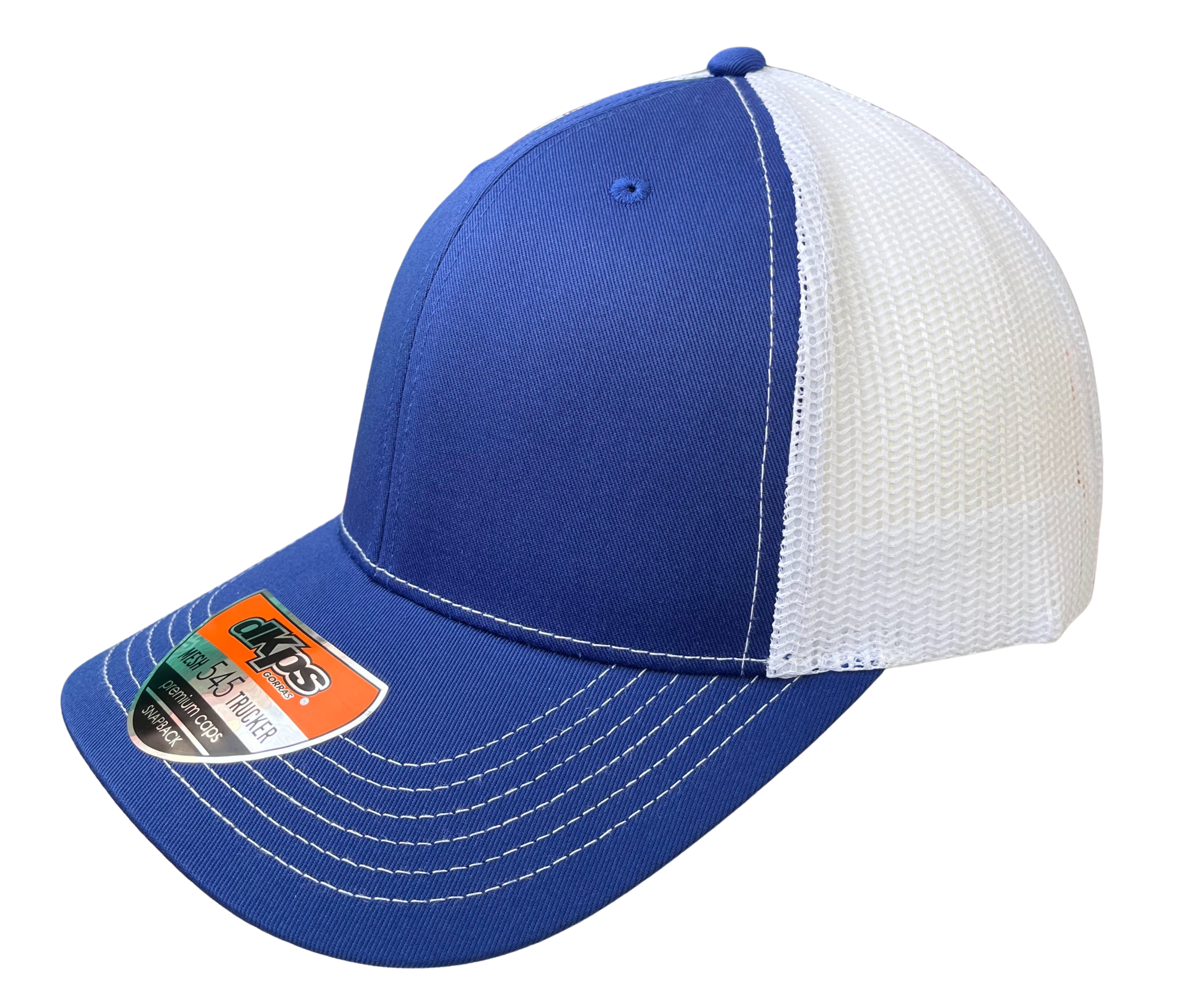 DKPS #545 GORRA MESH ROYAL/BLANCO, ALG 50% POL 50%, MALLA PREMIUM 6 GAJOS, AJUSTE PLASTICO