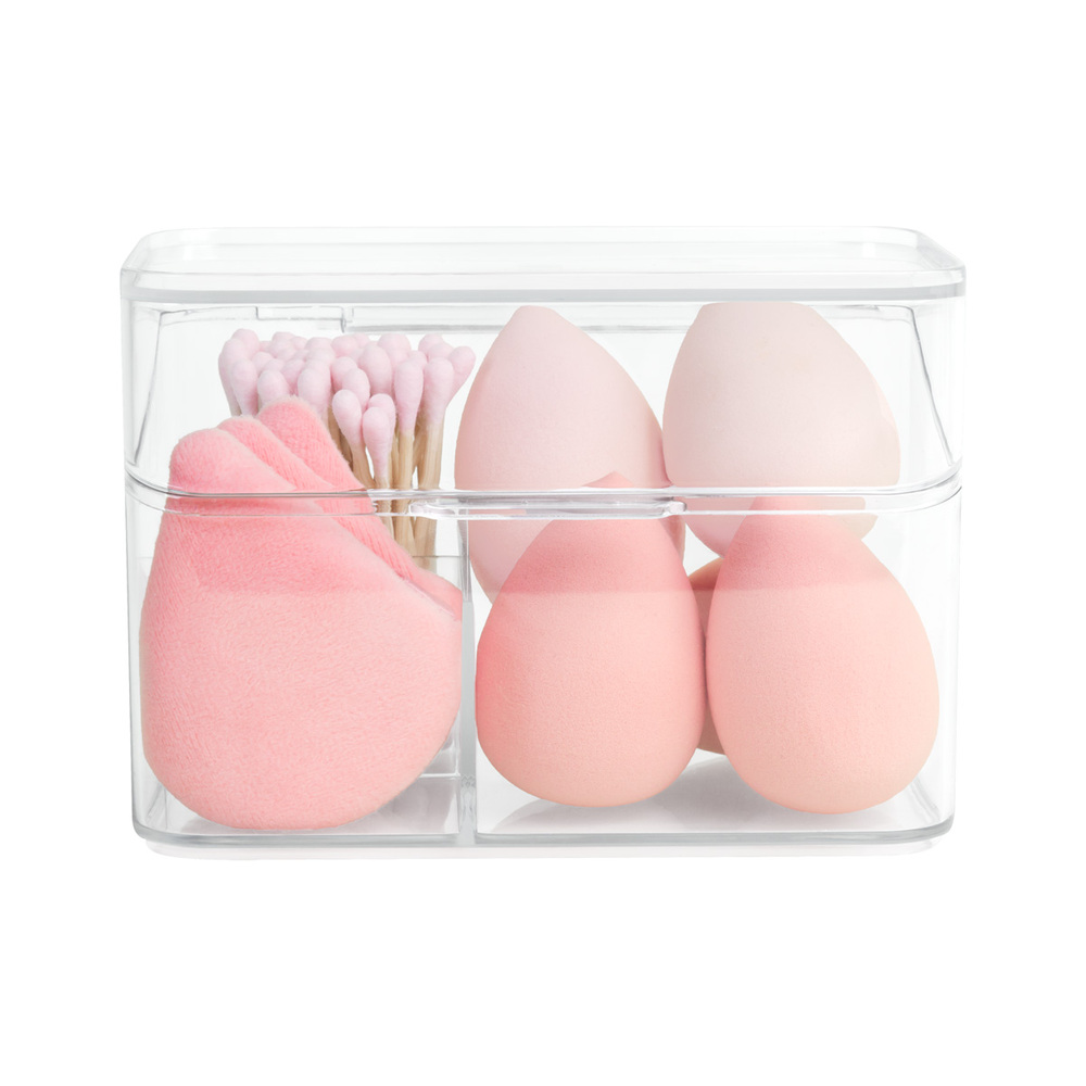 SET DE APLICADORES MAJA - Estuche con set de aplicadores. Incluye 5 aplicadores de esponjas de látex perfectos para bases y correctores, 3 pufs de poliéster para polvos que garantizan un acabado uniforme y profesional, y 50 cotonetes de madera ideales para detalles y retoques. Su estuche esta diseñado para mantener todo organizado.